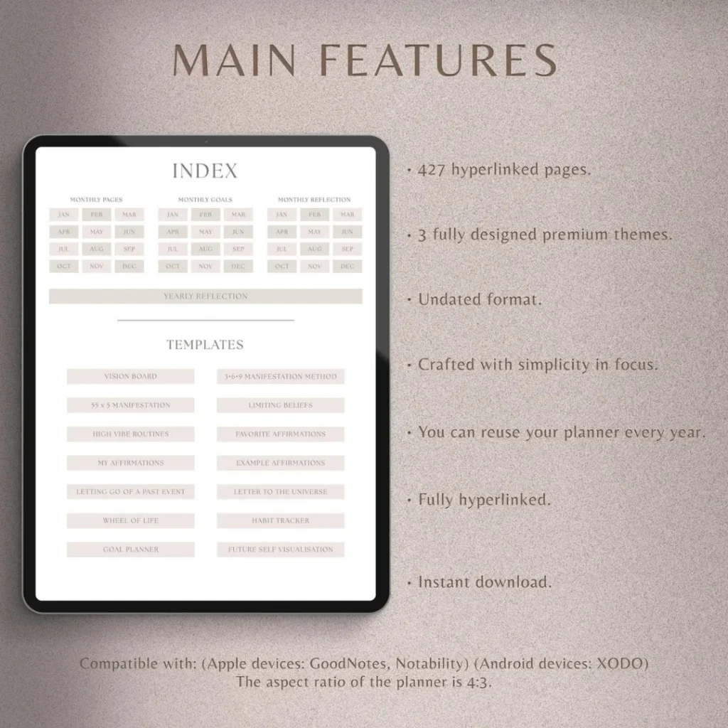 The planner can be used on Apple, Android, & Windows Tablets.